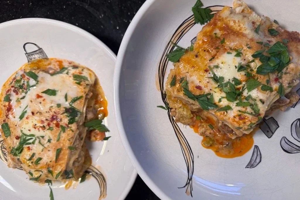 Let the lasagna rest for at least 15 minutes before slicing. This allows the layers to set so each portion holds together cleanly.